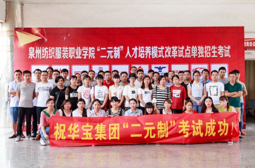 2017年6月14日,華寶集團(tuán)與泉州紡織服裝職業(yè)學(xué)院合作的“二元制”人才培養(yǎng)模式改革試點(diǎn)單獨(dú)招生考試順利開(kāi)考。