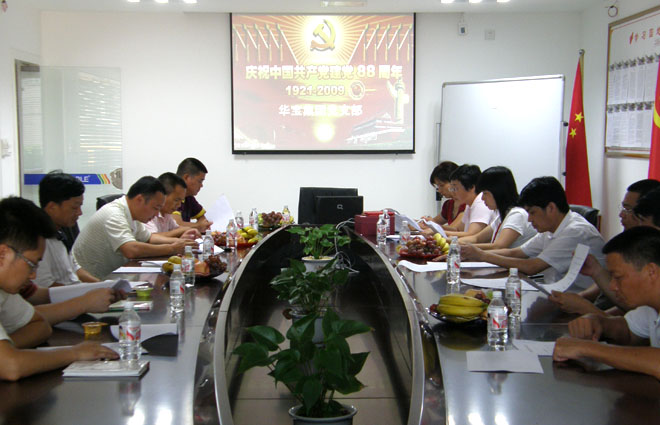 為慶祝中國共產(chǎn)黨成立八十八周年,我集團黨支部召開了“七·一”黨員大會。 集團黨支部書記吳立新對支部的發(fā)展歷程、支部的工作及黨員的發(fā)展情況做了介紹,開展學習黨支部三會一課及胡錦濤總書記的“科學發(fā)展觀”。 大會上,支部委員會授予:曾君海(化工廠)、陳國華(二廠)同志2008—2009年度“優(yōu)秀共產(chǎn)黨員”稱號! 華寶黨支部全體黨員參加會議 集團黨支部書記吳立新發(fā)表講話 |
