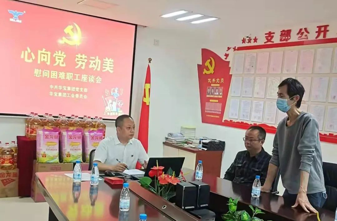 2022年4月29日,在中國(guó)第72個(gè)勞動(dòng)節(jié)即將到來(lái)之際,華寶集團(tuán)黨支部和工會(huì)隆重舉行了慰問(wèn)困難職工和表彰“抗疫先鋒”活動(dòng),以關(guān)懷和致敬一線員工,激發(fā)勞動(dòng)最光榮熱情,集團(tuán)黨支部書(shū)記、工會(huì)主席師體偉主持了活動(dòng)。