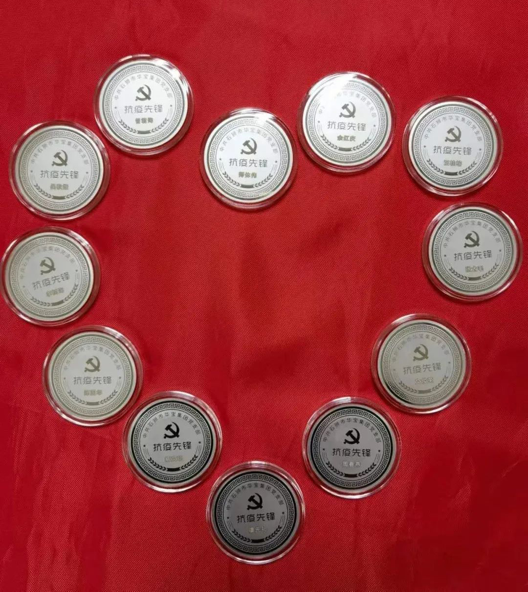 (上圖為獲得紀(jì)念章的黨員合集?!翱挂呦蠕h”紀(jì)念章由50g純銀打造,刻制專(zhuān)屬姓名和單位)