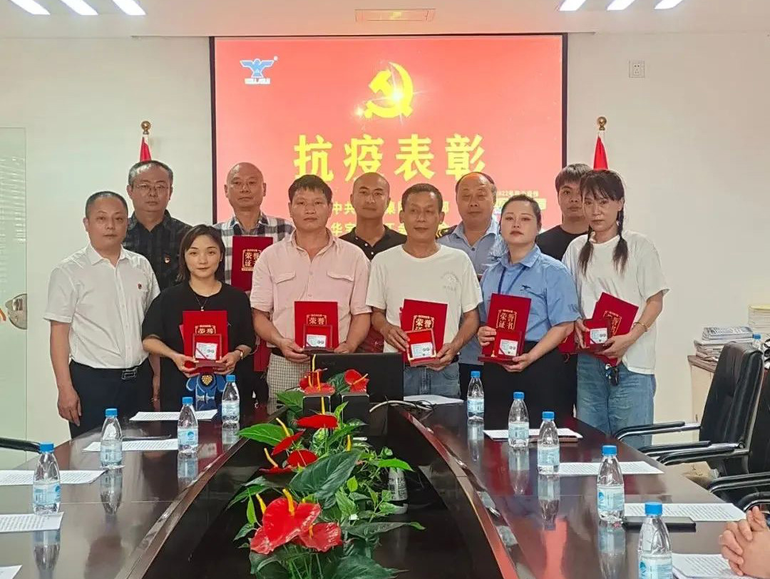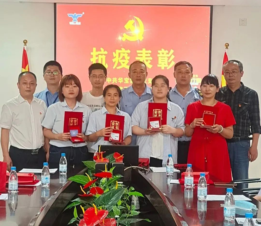 表彰抗疫先鋒 同樣,在三月份出現(xiàn)的新冠疫情里,在公司董事會(huì)以及黨群工作部的帶領(lǐng)下,公司上下并肩作戰(zhàn),齊心守護(hù),廣大黨員干部及志愿者積極響應(yīng)政府號(hào)召,迅速反應(yīng),第一時(shí)間奔赴“抗疫”前線,以實(shí)際行動(dòng)詮釋了“奉獻(xiàn)、友愛(ài)、互助、進(jìn)步”的志愿精神,取得了抗擊本輪疫情的階段性勝利。今天,特隆重舉行抗擊新冠肺炎疫情表彰會(huì),向作出貢獻(xiàn)的黨員和職工授予“抗疫先鋒”榮譽(yù)稱(chēng)號(hào),弘揚(yáng)偉大抗疫志愿精神,致以崇高敬意,表達(dá)衷心感謝。 面對(duì)此次疫情,華寶集團(tuán)的黨員表現(xiàn)出了高度的責(zé)任感和使命感,挺身而出,成為群眾的“主心骨”和先鋒軍,用實(shí)際行動(dòng)當(dāng)好標(biāo)桿,發(fā)揮先鋒作用。他們不忘黨員的初心本色,在黨旗引領(lǐng)下,團(tuán)結(jié)群眾,眾志成城,勇敢地投入到疫情防控前線,堅(jiān)決捍衛(wèi)人民群眾的生命財(cái)產(chǎn)安全,用實(shí)際行動(dòng)彰顯黨員的責(zé)任和擔(dān)當(dāng)。此次受到表彰的一共有12名黨員干部(含2名涉外黨員),分別為師體偉、余紅慶、李樹(shù)海、虞先禮、王碧花、文俊榮、周春燕、蔡文明、陳國(guó)華、吳秋媛、張?zhí)⑼豕痖?,華寶集團(tuán)黨支部書(shū)記、工會(huì)主席師體偉向他們頒發(fā)了“抗疫先鋒”榮譽(yù)證書(shū)和特別定制的紀(jì)念章。
