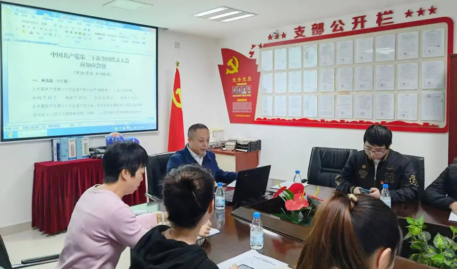 為認(rèn)真學(xué)習(xí)貫徹黨的二十大精神,檢驗(yàn)和鞏固理論學(xué)習(xí)成果,會上開展了黨的二十大報(bào)告應(yīng)知應(yīng)會知識測試,引導(dǎo)黨員以考促學(xué)、以學(xué)促用、知行合一。支部黨員積極搶答,氣氛活躍,推動學(xué)習(xí)貫徹黨的二十大精神往深走、往實(shí)里走。