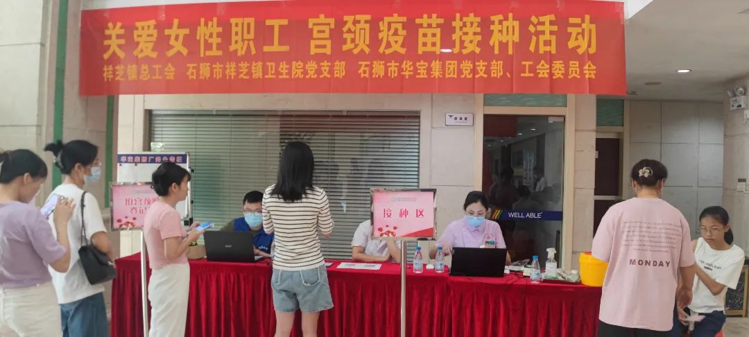為更好地履行華寶集團(tuán)黨支部和祥芝鎮(zhèn)衛(wèi)生院黨建共建協(xié)議,落實(shí)祥芝鎮(zhèn)衛(wèi)生院家庭醫(yī)生簽約協(xié)議,6月23日祥芝鎮(zhèn)衛(wèi)生院為華寶集團(tuán)80余位婦女職工提供2價(jià)宮頸癌疫苗上門注射服務(wù),為華寶集團(tuán)女職工的健康保駕護(hù)航,也更好地發(fā)揮華寶集團(tuán)黨支部和工會(huì)關(guān)愛婦女職工作用。 在我國,宮頸癌是第二大女性惡性腫瘤,每年新發(fā)病例11萬左右??芍^不折不扣的"紅顏殺手"。不過幸運(yùn)的是,宮頸癌是目前唯一病因明確、可防可控的癌癥。因此做好疾病科普,讓大家做好預(yù)防措施,能夠有效預(yù)防宮頸癌。