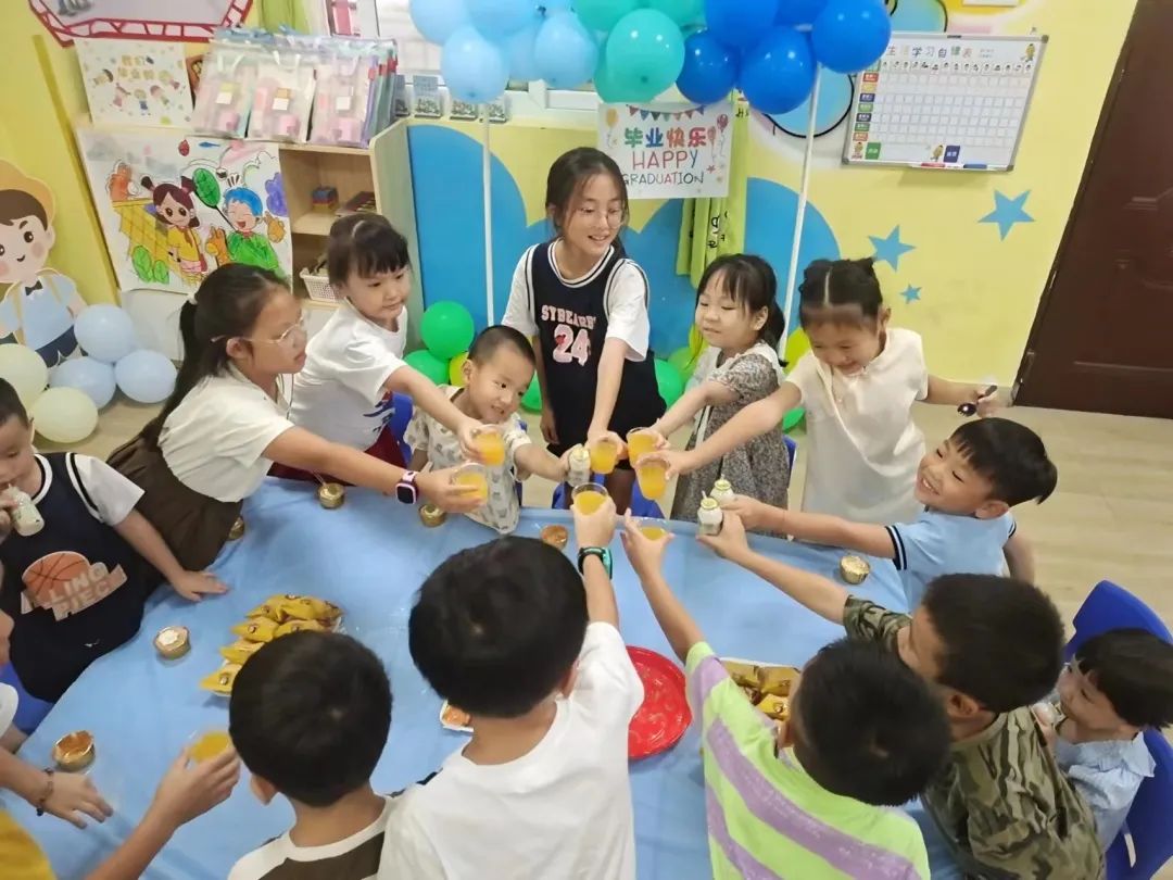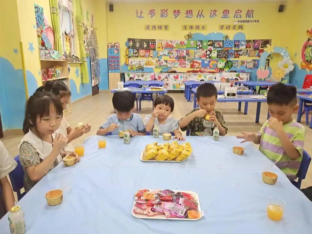 初夏時節(jié) 陽光正好,溫度適宜 在公司黨群工作部的關(guān)懷下 放暑假的職工子女“小候鳥”如期而至 在“四點半”活動中心 度過了一個愉快的假期。 如今,金風(fēng)送爽,“小候鳥”即將歸巢~ 一場歡送會為小候鳥送別 期待來年再見! 01 快樂聚餐 五位即將返程的“小候鳥”與“四點半”活動中心的其他小朋友聚在一起,開心地享用下午茶,感受伙伴們的熱情與陪伴,訴說著不舍與道別......