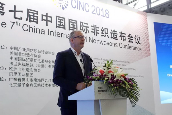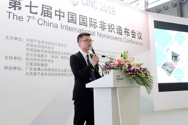 當前全球非織造布產(chǎn)業(yè)飛速發(fā)展,創(chuàng)新協(xié)同越來越密切,如何破解全球經(jīng)濟發(fā)展的不確定因素、環(huán)保等共同壓力,實現(xiàn)資源共享、合作共贏,構(gòu)建全球非織造布命運共同體,實現(xiàn)行業(yè)高質(zhì)量發(fā)展,9月5日,作為由中國產(chǎn)業(yè)用紡織品行業(yè)協(xié)會、美國非織造布協(xié)會、中國國際貿(mào)易促進委員會紡織行業(yè)分會、法蘭克福展覽(香港)有限公司主辦,歐洲非織造布協(xié)會、貝里國際集團支持,廣東省佛山市南海區(qū)九江鎮(zhèn)人民政府、北京量子金舟無紡技術(shù)有限公司協(xié)辦的第四屆中國國際非織造布會議在2018中國國際產(chǎn)業(yè)用紡織品及非織造布展覽會”(2018CINTE)期間舉行。