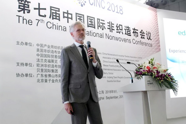 法蘭克福展覽有限公司產(chǎn)業(yè)用紡織品及紡織加工品牌總監(jiān)Michael. Janecke致辭時表示,CINTE一直致力于為全球產(chǎn)業(yè)用紡織品企業(yè)搭建公開公平公正的交流平臺,本屆展會,海外展商的數(shù)量達到歷史新高,他們也帶來了領(lǐng)先的創(chuàng)新產(chǎn)品,可以與國內(nèi)產(chǎn)業(yè)用紡織品企業(yè)進行更全面的貿(mào)易交流。盡管當前國際形勢比較復雜,但非織造材料依舊保持了良好的發(fā)展前景,市場需求不斷提升,市場驅(qū)動后勁十足。 Michael Janecke表示:“目前,70%功能性非織造材料的功能尚待完全開發(fā),雖然說網(wǎng)絡(luò)媒體日漸發(fā)達,但我們依舊需要面對面的交流,去碰撞出更多的合作伙伴和創(chuàng)新想法,今天召開的第七屆中國國際非織造布會議將從市場趨勢和產(chǎn)品應用兩個方面探討行業(yè)發(fā)展,希望對于企業(yè)布局未來發(fā)展提供良好幫助?!?br />