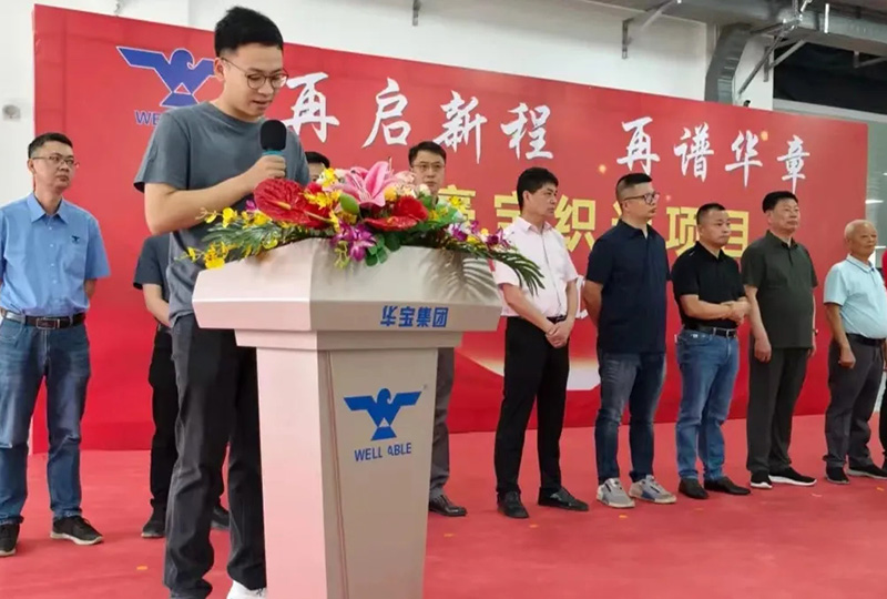 “織機2000臺,同時引入自動掛紗、自動落布,可以極大地提高生產(chǎn)效率和提供更優(yōu)質的產(chǎn)品,在實現(xiàn)智能化管理的同時,爭取成為行業(yè)智能化的標桿?!焙缹毧椩鞆S總經(jīng)理助理劉永豪在致辭中說道。豪寶織造廠的發(fā)展是華寶集團實現(xiàn)產(chǎn)業(yè)鏈升級,提高核心競爭力的關鍵所在,他表明將在未來與各位同事攜手并進,共同奮斗,創(chuàng)造華寶集團更加輝煌的明天!